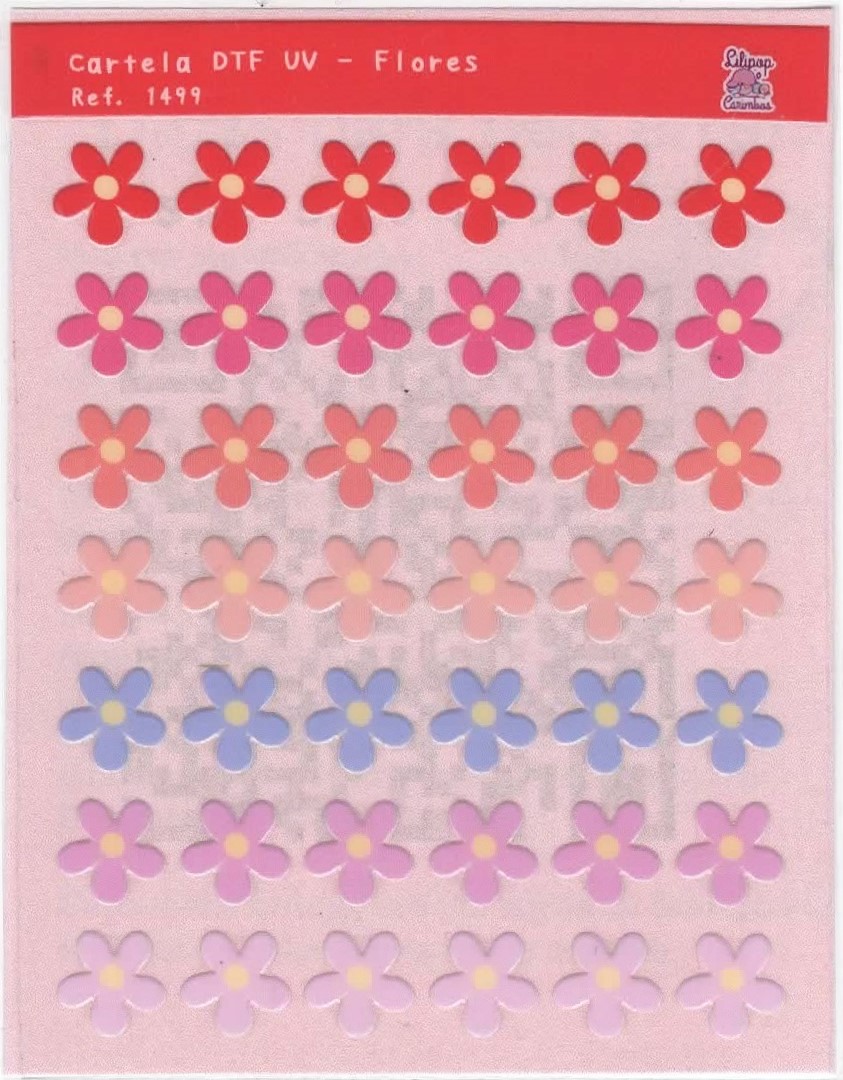 Cartela de adesivos DTF UV lindinha com tema de Flores!
