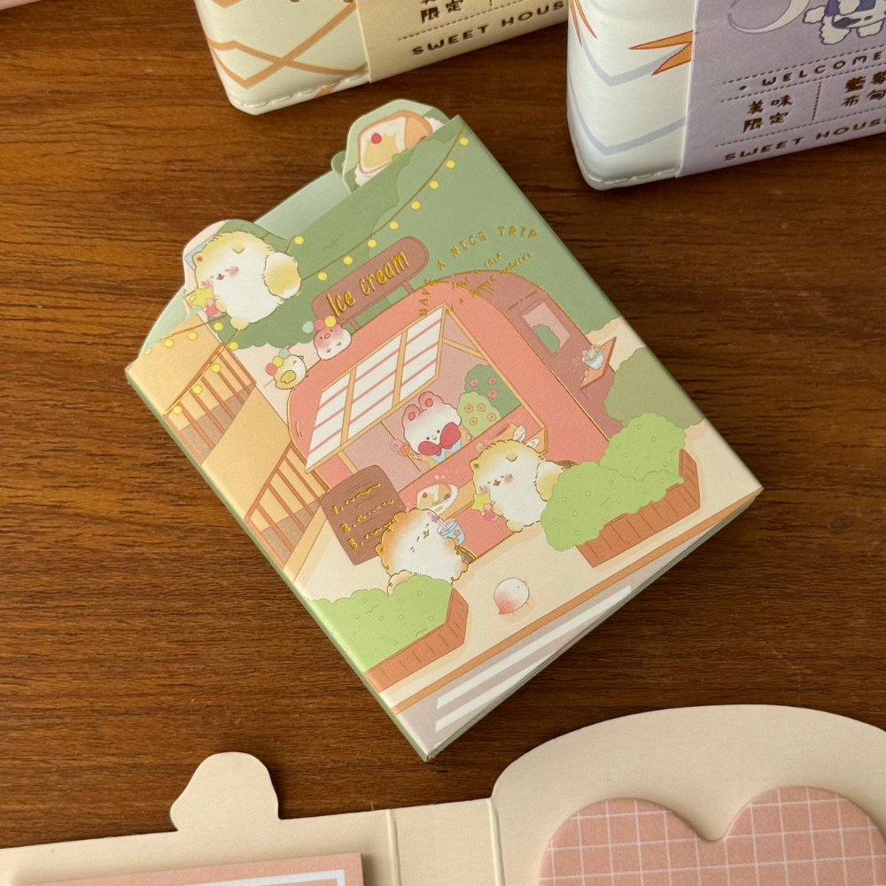 Conjunto de blocos autoadesivos super fofos tema de Coelhinho e Comidinhas!
