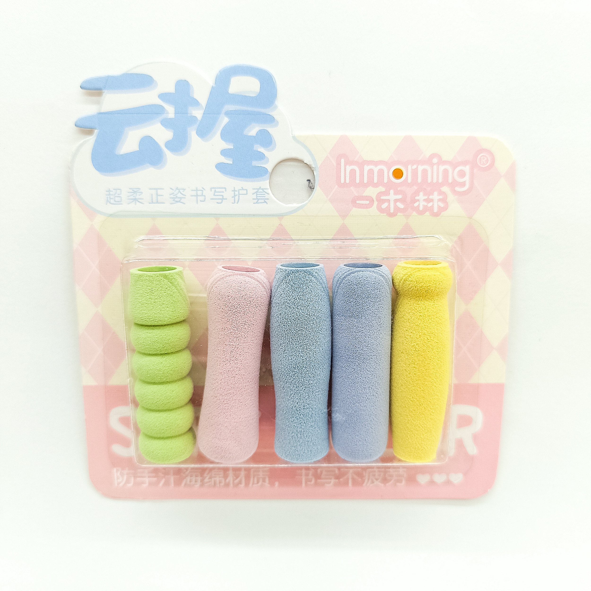 Kit com 5 protetores de dedo coloridos feitos de EVA! São bem macios para trazer mais conforto à sua escrita!