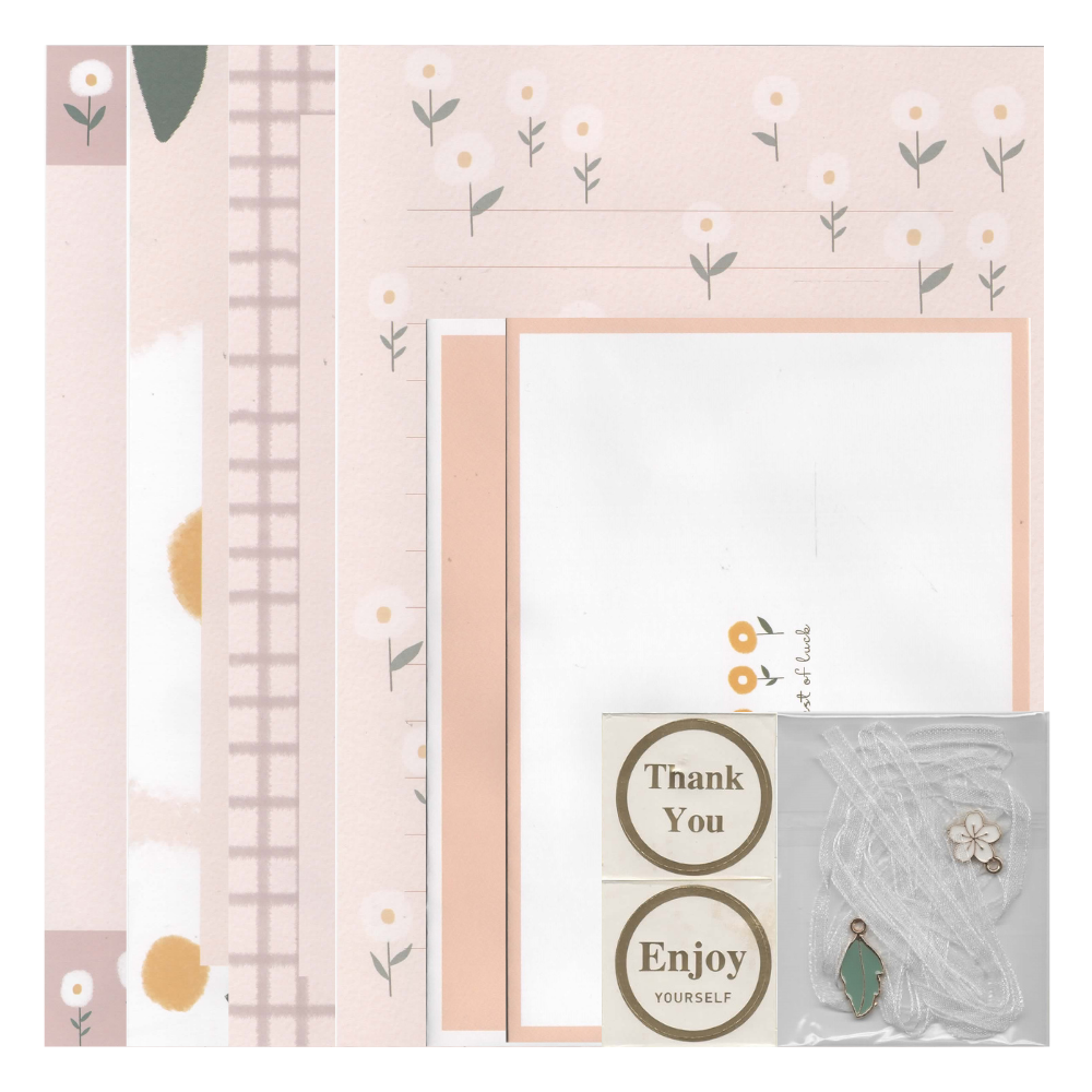 Kit Com 4 Papéis de Carta + 2 Envelopes + Acessórios Rosa Margarida