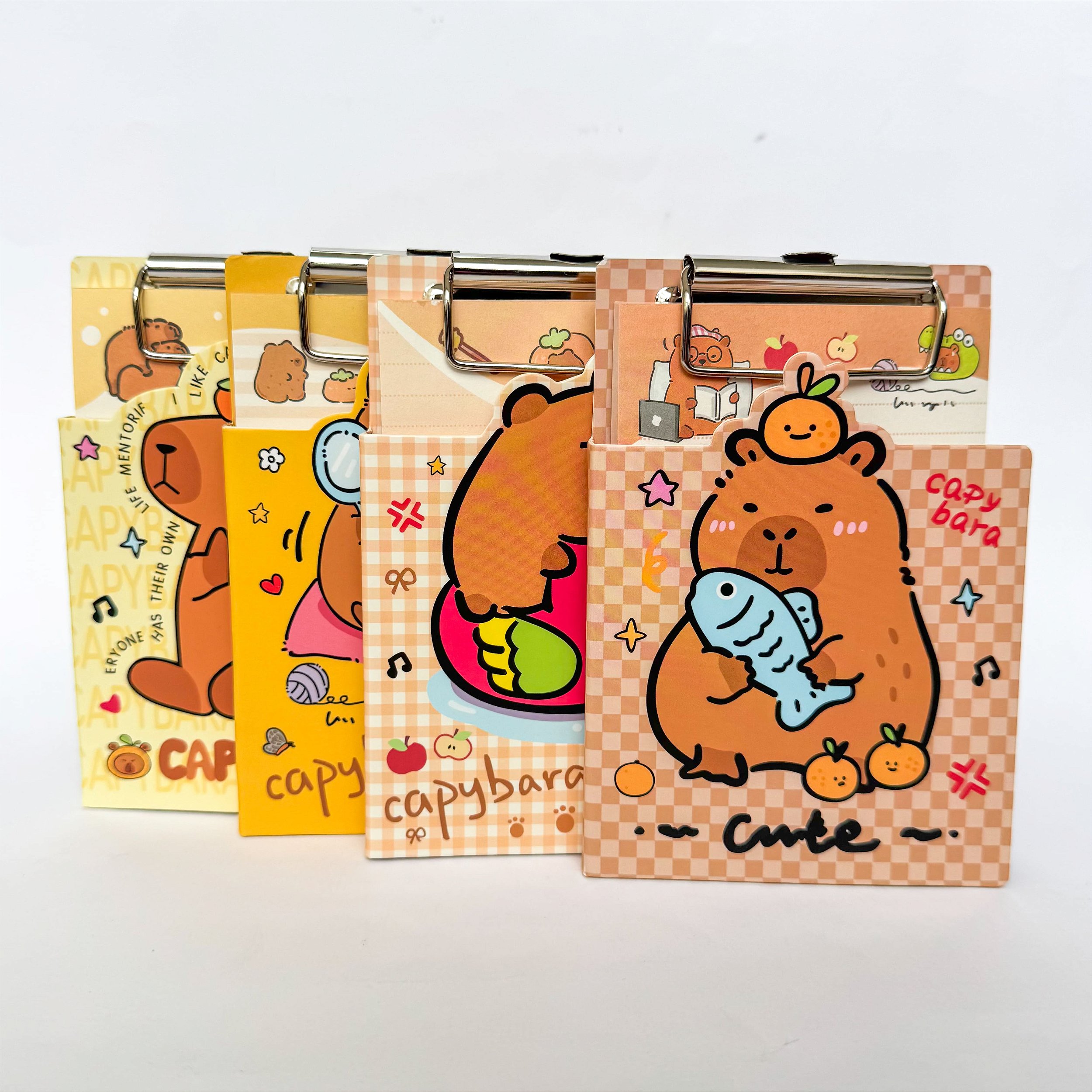 Mini prancheta com um bloco de anotações ilustrado super fofo de capivara! Possui um furo para pendurar também!