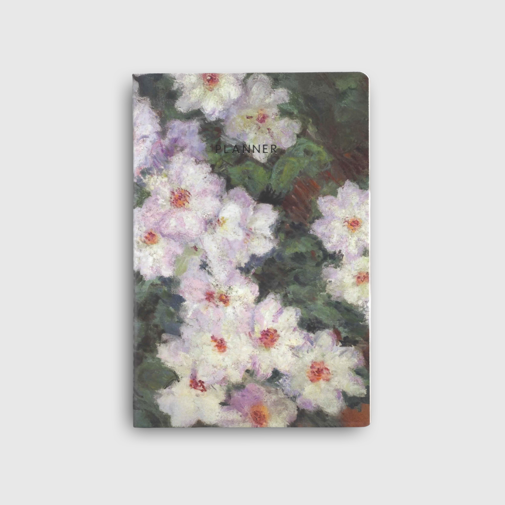 O Planner Clematites Brancas sem data com planejamento semanal é ideal para montar o seu planner Folk Books personalizado.